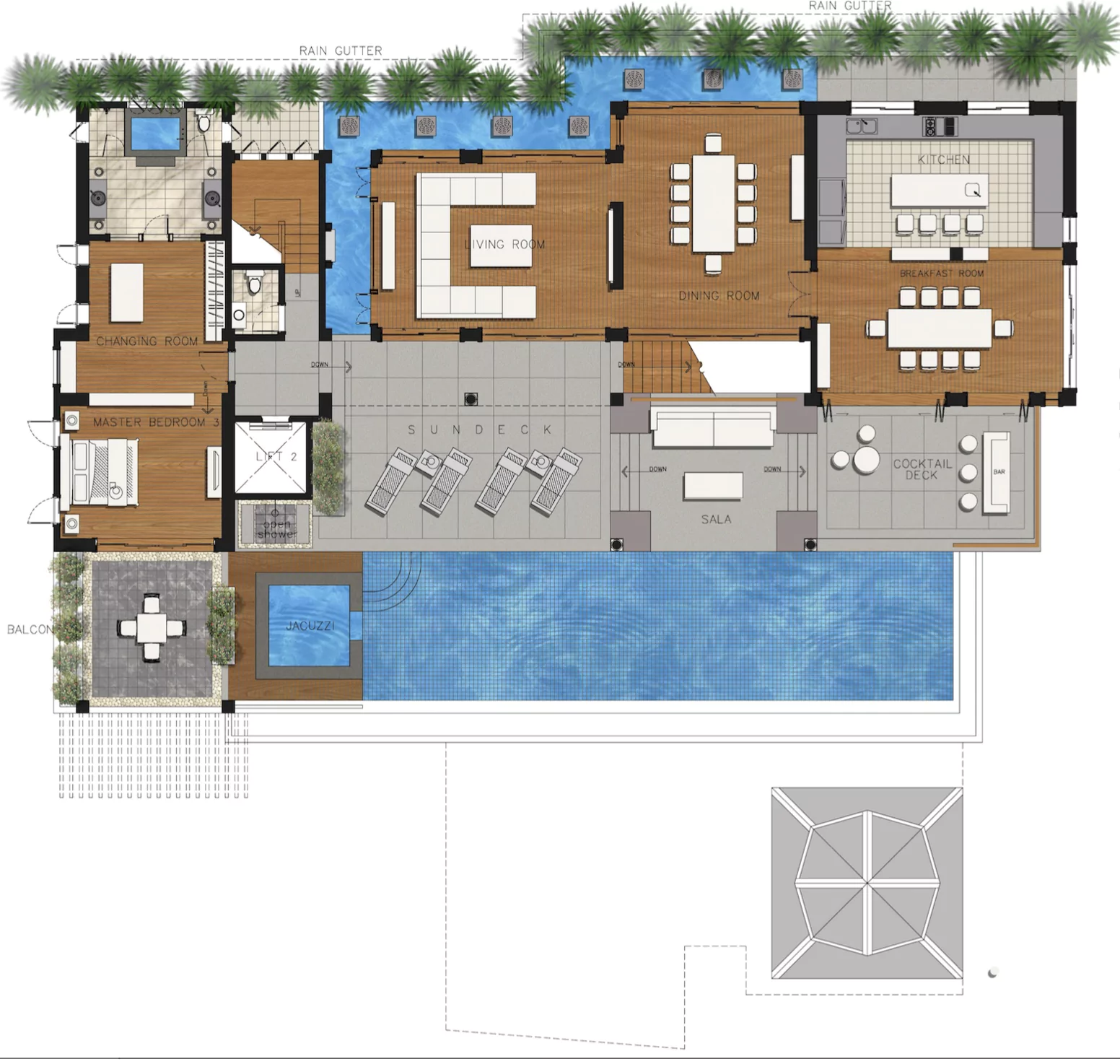 Outdoor Jacuzzi Bathrub of Master Bedroom